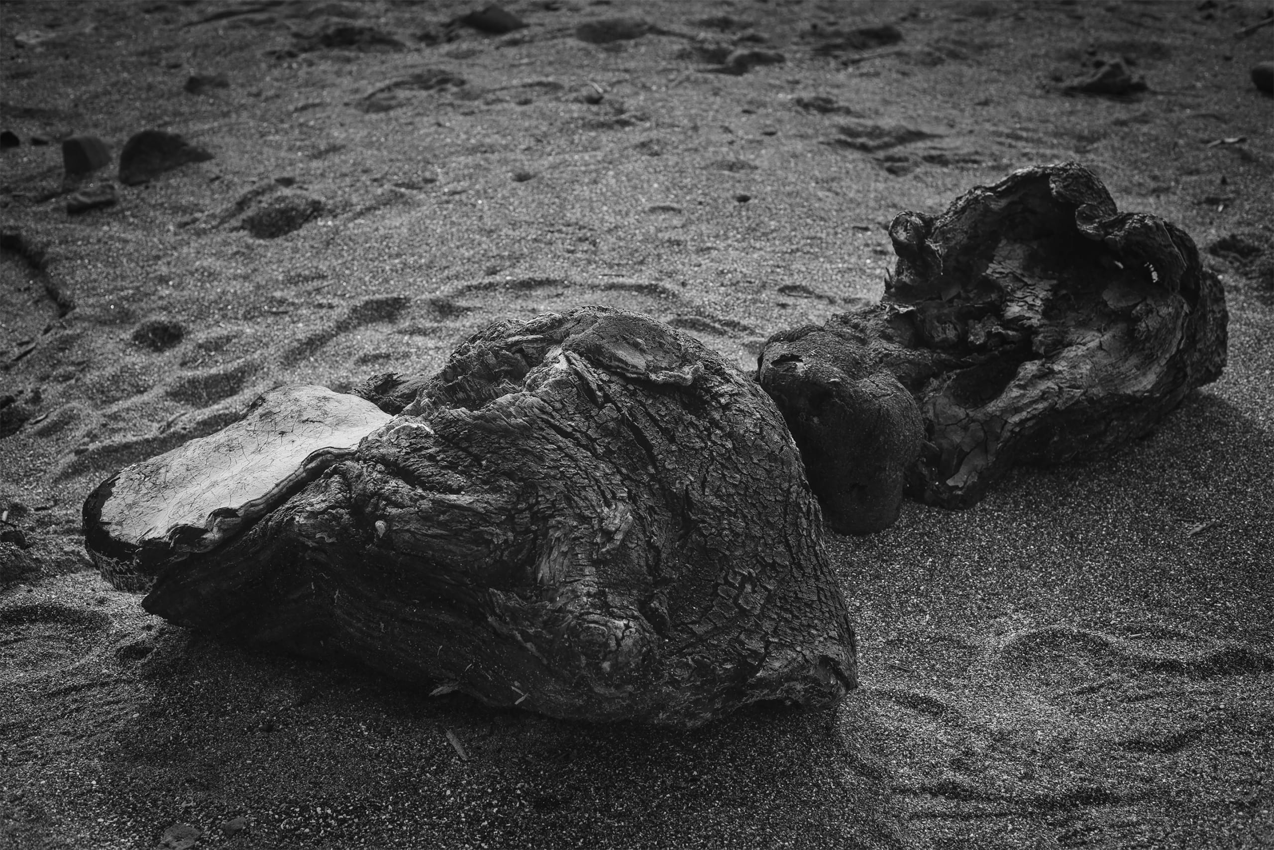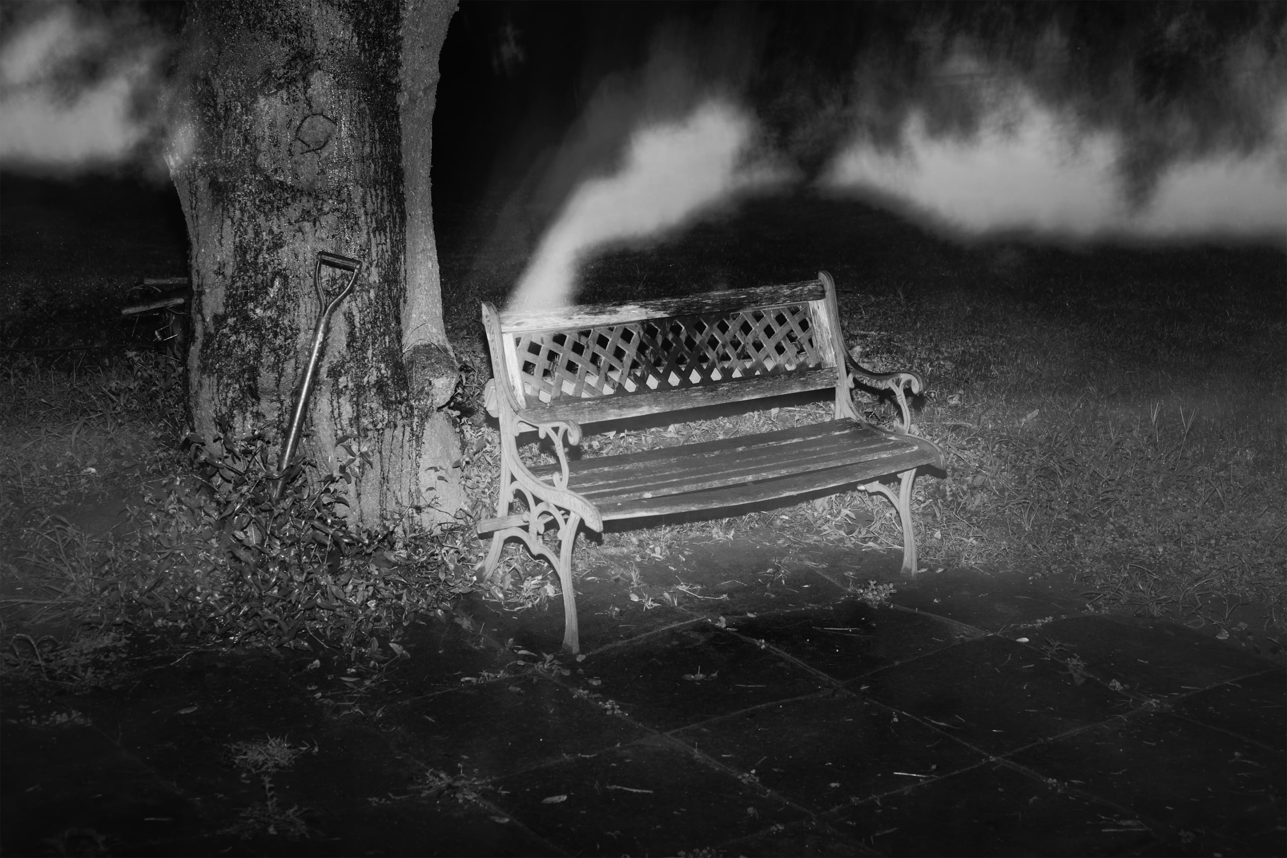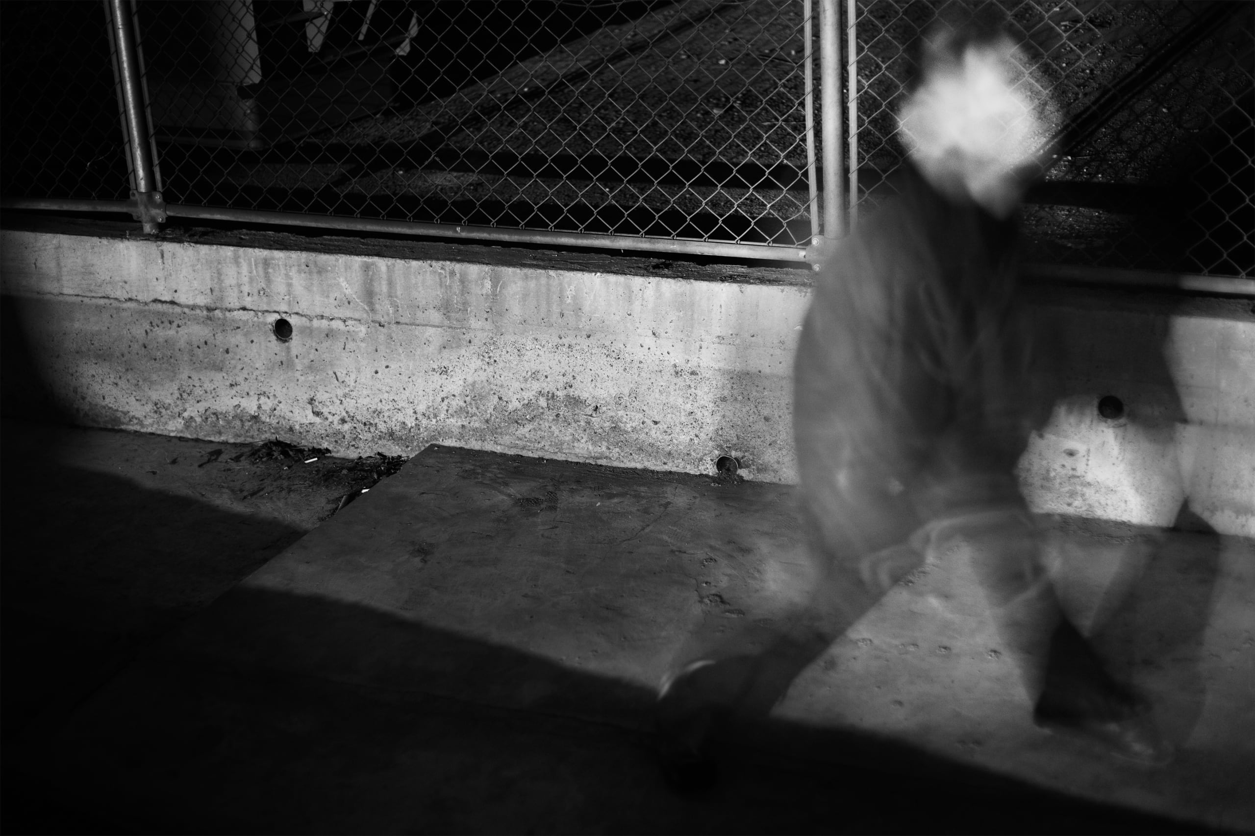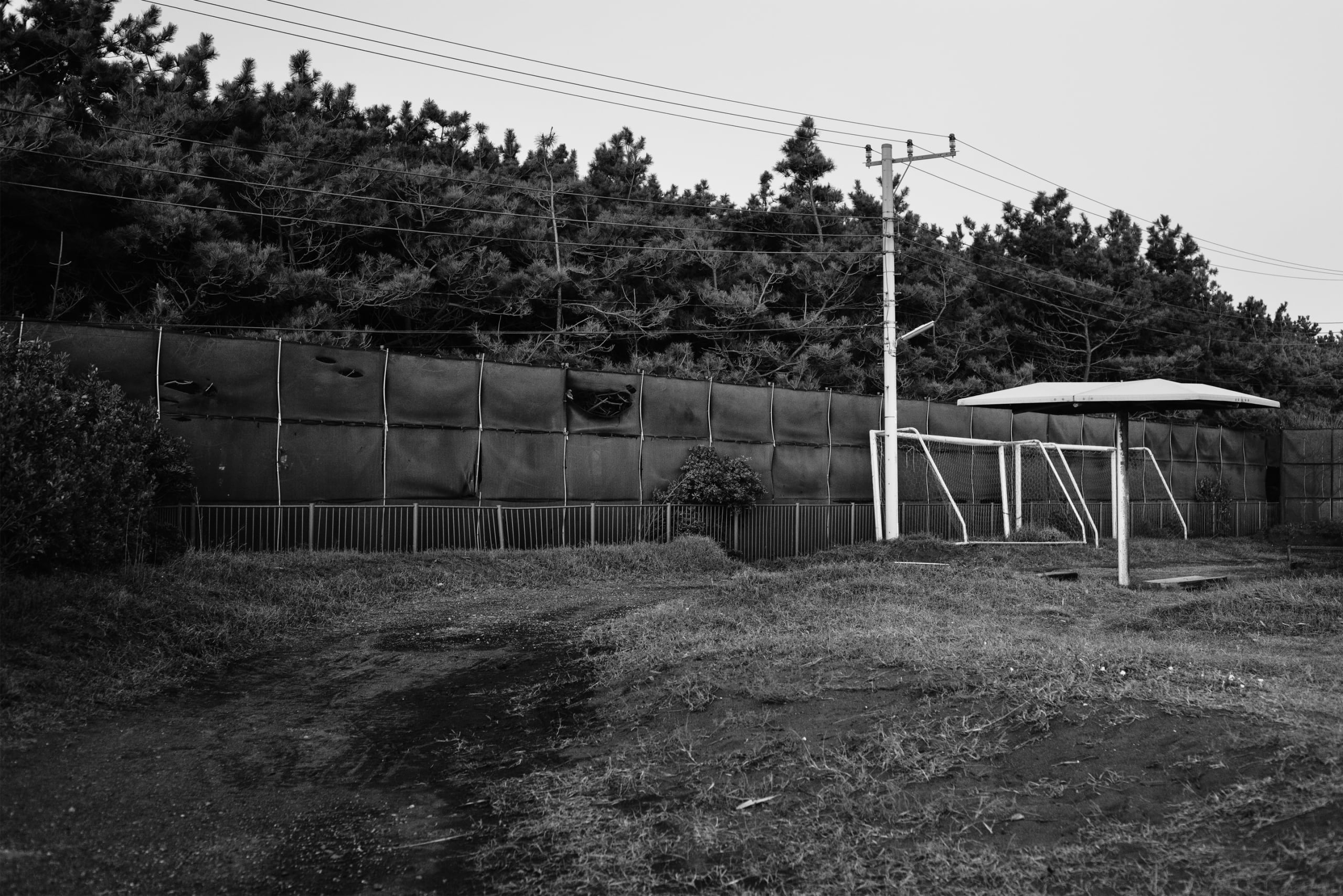 暮らす街から抜け出して遠方へ足を運び、人のいない場所を選んでは自分がそこにいることを夢想する時、私は決まってカメラを持っている。そこで見つけたモノを撮影し、現像とプリントを行う一連のことは、カメラを隔てた被写体と私を考えることだ。被写体の持つ不測の要素に惹かれた私自身を見つめ直し、その不測の要素とは何かを発見する作業であり、そして私が何から逃げ出して来たのかに気づく過程だ。ファインダーを覗きシャッターを押してすぐの風景から切り取られたばかりの画像が、色を抜き取られ、紙という媒体に落とし込まれてモノとなるまでの濾過を経て、最後に残ったものは何かを知りたかった。友人や虚栄、過去と喧騒から逃げた先で、私は撮ることから逃れられない。逃走にて、追うものとは自分自身だ。